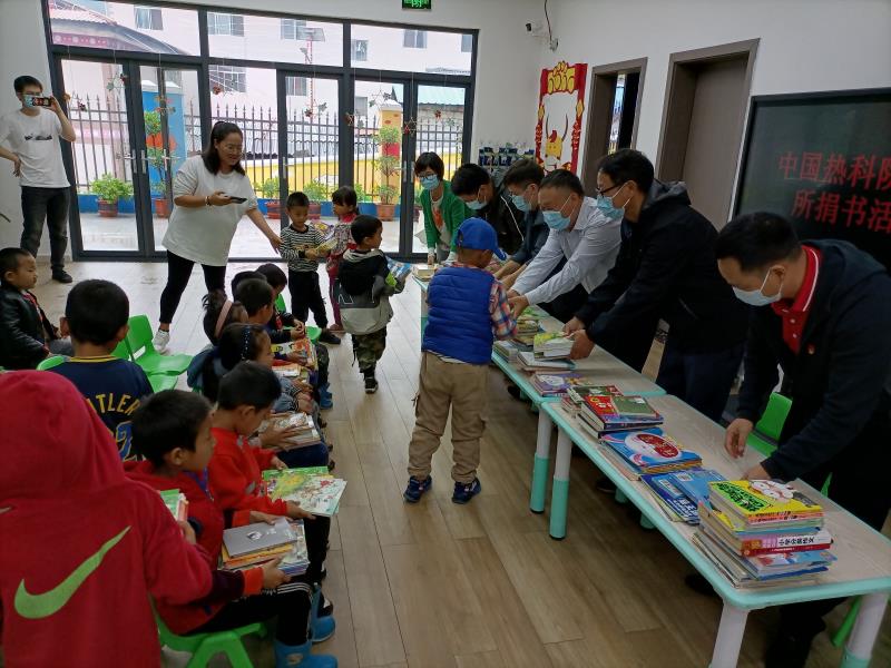 下午,杨春亮副书记一行来到福贡子里甲中心幼儿园开展捐书活动。杨春亮副书记首先热情问候了幼儿园师生,并介绍了加工所的概况。在前期捐书活动中,加工所和农机所广大职工积极响应所党委号召,纷纷从子女阅读的书籍中挑选出学龄前儿童绘本,有些年轻职工甚至专门选购了崭新图书,一共募集到600余册(本)图书。在孩子们的期待中,党员们把书籍送到每个小朋友的手上,孩子们的脸上都露出了灿烂的笑容并用可爱的舞蹈表达了感谢。