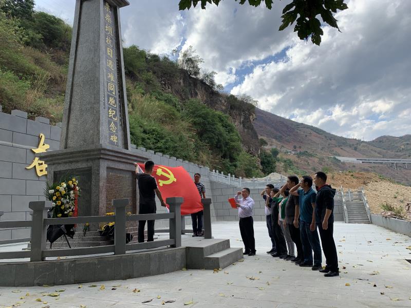 当天大家还来到怒江栗柴坝抗日遇难同胞纪念碑,开展红色教育实践活动。纪念碑上记载了那段沉重的历史:1942年5月19日,侵华日军一部杀害滞留在怒江西岸的难民290余人,仅10余人逃至树林幸免于难,其中多数是从缅甸逃回祖国的华侨同胞,有老人也有乳婴。惨案发生后,怒江各族各界人士同仇敌忾,投入抗日救亡斗争中。听了这段历史,支部党员心情沉重,通过重温入党誓词进一步坚定了为共产主义事业奋斗终身的决心。