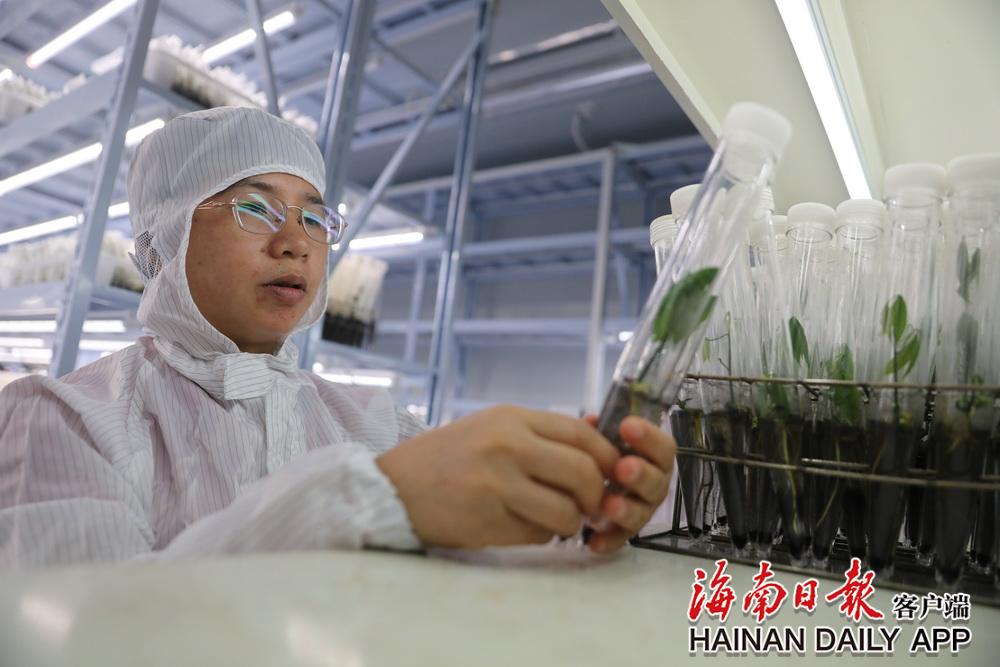 当前位置: 首页 » 新闻中心 » 媒体报道 【海南日报客户端】组图|海南橡胶组培苗产能位居世界前列 来源:中国热带农业科学院 作者: 海南日报记者张茂 点击数: 次 发布时间:2021-09-28 我要分享 打印 【字体: 大 中 小 】 据海南日报客户端|记者 张茂 摄影报道2021年9月22日,在海南天然橡胶新型种植材料创新基地,中国热带农业科学院橡胶研究所的科研人员在观察橡胶树组培苗生长情况。据了解,该基地具备年产超100万株橡胶组培苗的能力,走在世界前列,实现全国橡胶树组培苗1/10的供苗能力。组培苗具有完整继承母株特性、生长速度快、抗性优良等优点。目前,生产的橡胶树组培苗已经种植到了海南、云南、广东三大植胶区,推广面积达2万亩。