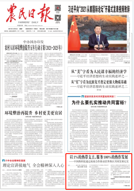 【农民日报】以1%的热带支点,服务100%的热作发展——中国热科院通过南南合作推动世界热区共同发展纪实