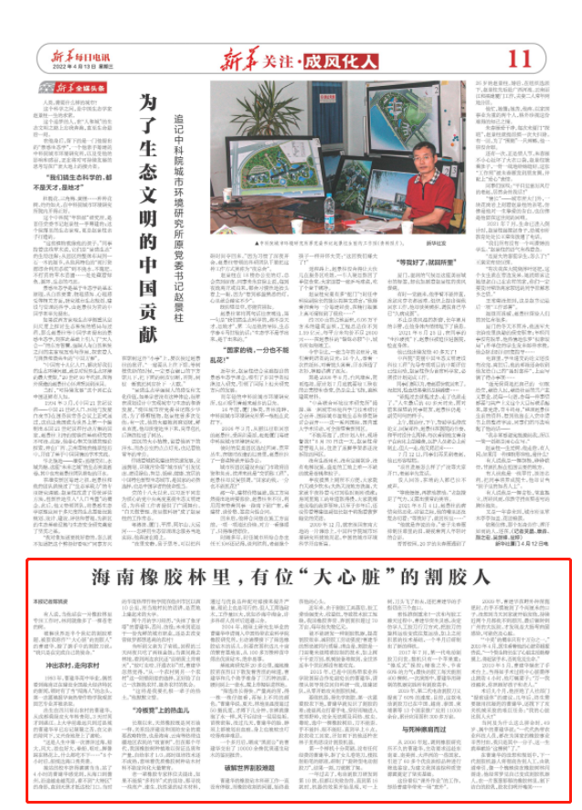 【新华每日电讯】【新华社客户端】海南橡胶林里,有位“大心脏”的割胶人